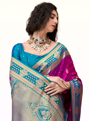 Kanjivaram (Kancheepuram) silk sarees are premium South Indian bridal silks known for heavy mulberry-silk weave, broad contrast borders and pure…